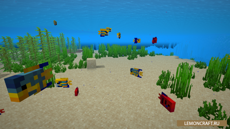 Мод на подводных жителей Aquafina наполнит водоемы вашего мира новыми обитателями, которых вы сможете обнаружить во всех биомах, где есть эти водоемы. В игре появятся гимантолофы, морские пауки, рыбы-ангелы, крабы и другая живность.